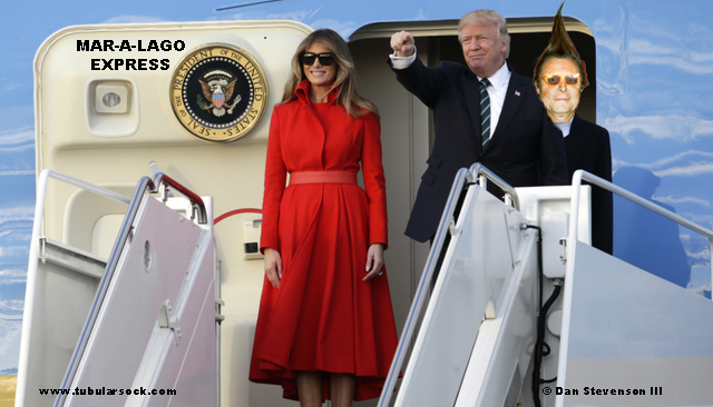 Melania & OrangeTweet with the Secretary Of The Deplorables, Tubularsock deplaning THE Mar-A-Lago Express …………. FOUR!
